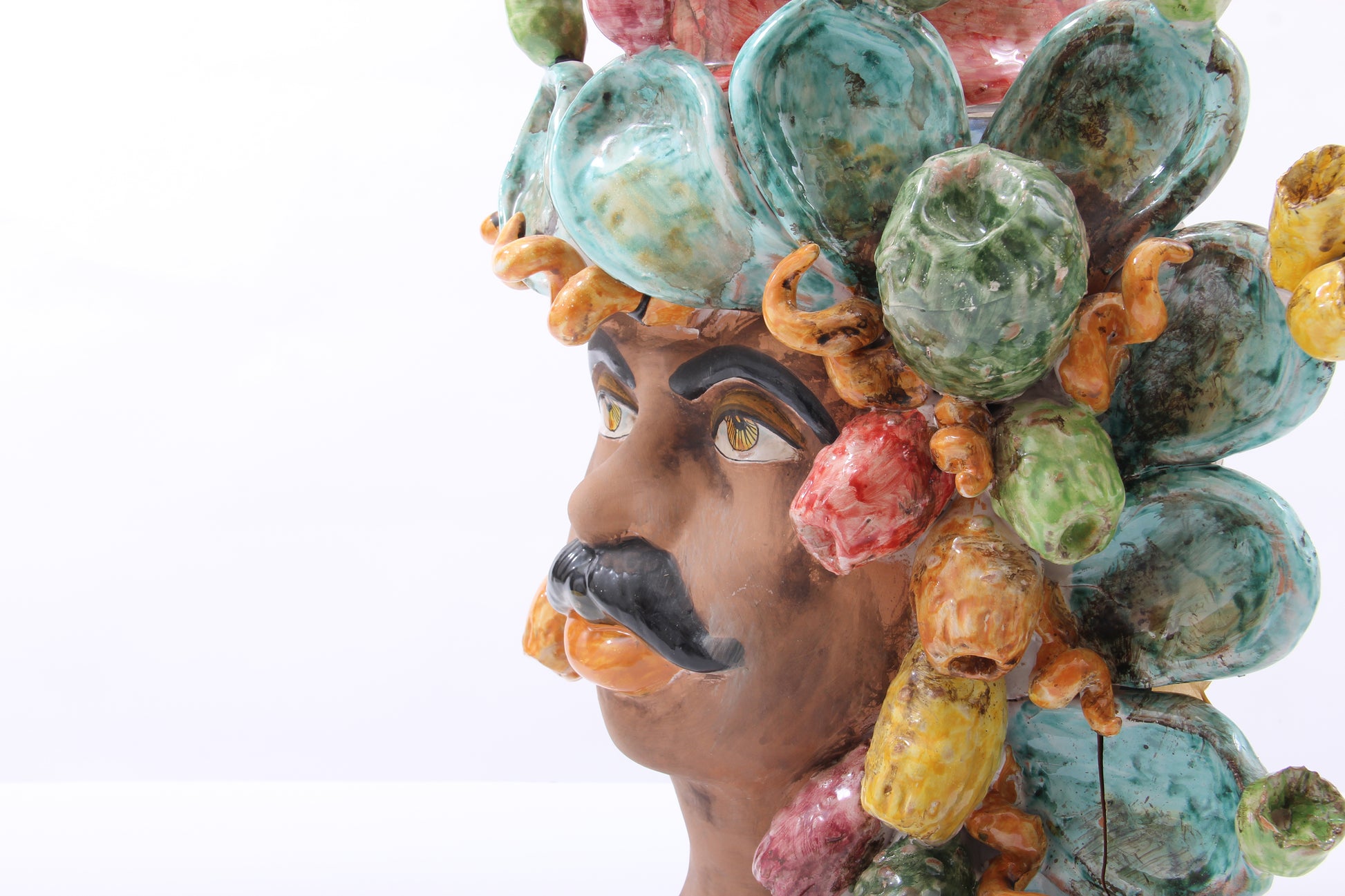 This is a rare, handmade, signed version of the infamous "testa di moro" vase. It has intrecate details that make it rich.